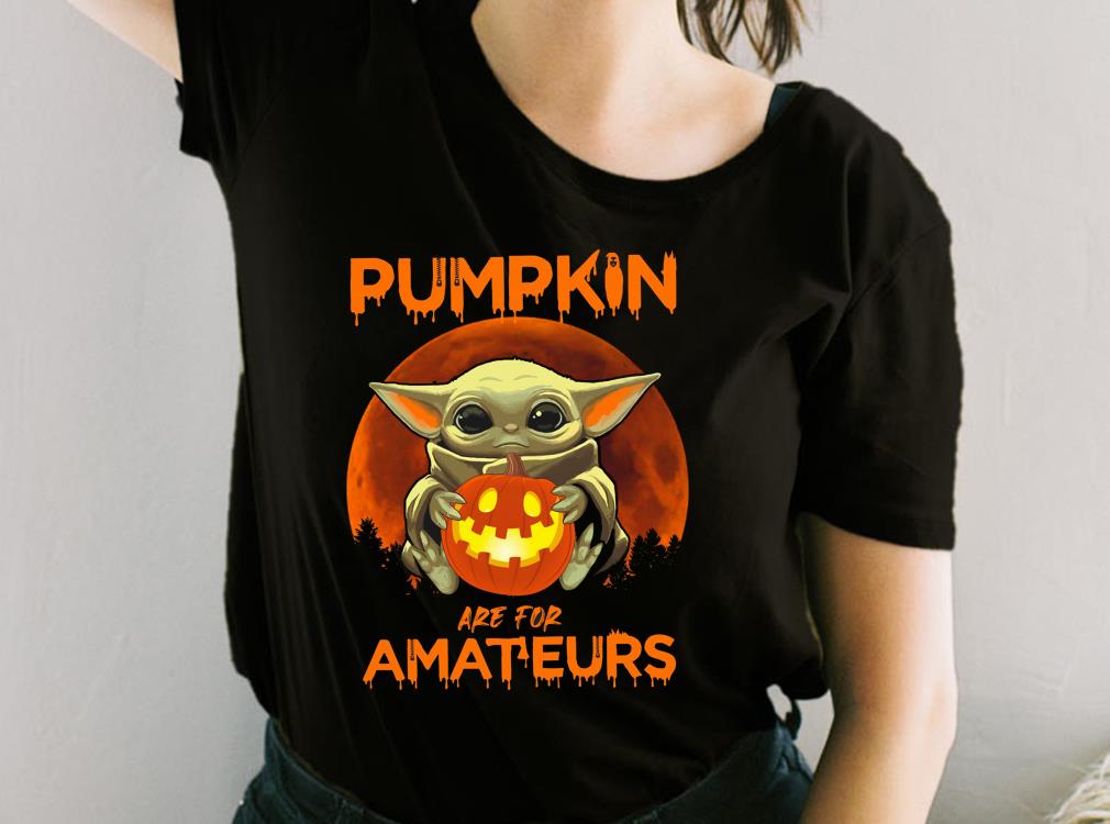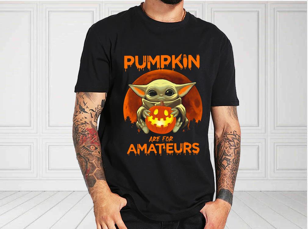 Click To Buy It: Baby Yoda Hug Pumpkin Are For Amateurs Shirt, Baby Yoda Halloween Shirt, Halloween For Fan Shirt